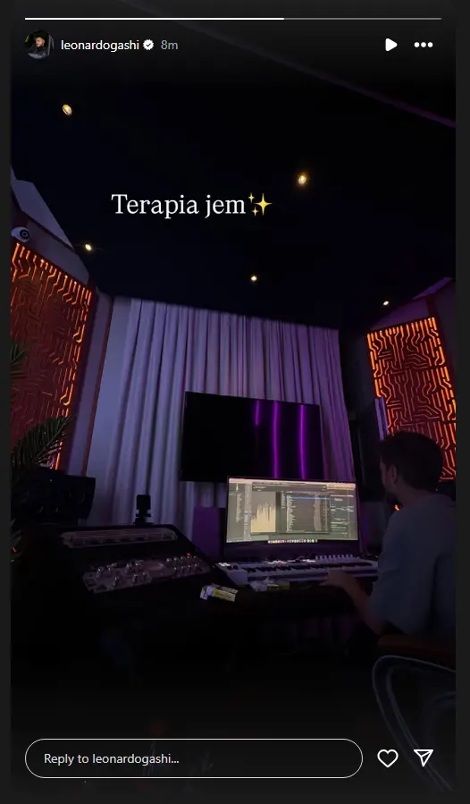 Leo ndau një foto në Instastory nga studioja muzikore, duke zbuluar se është në procesin e krijimit të këngës së tij të re. Kjo tregon se ai po e përballon situatën me kreativitet dhe pasion.