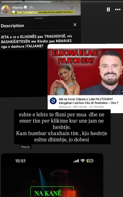 Pas një periudhe të gjatë heshtjeje, Elijona ka vendosur të reagojë ndaj spekulimeve që kanë qarkulluar në media. Ajo shprehet se heshtja e saj ka qenë një shenjë dhimbjeje, duke theksuar se është duke përjetuar një humbje të madhe në familje.