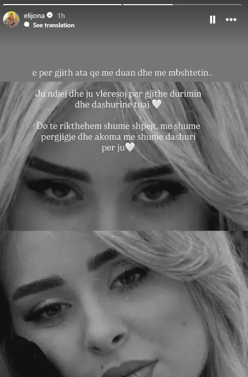 “Do të rikthehem shumë shpejt, me shumë përgjigje dhe akoma me shumë dashuri për ju”, ka shtuar ajo, duke lënë të kuptohet se do të ketë një rikthim të fuqishëm. Ky mesazh është një thirrje për të gjithë ata që e mbështesin, për të qenë të durueshëm dhe të kuptojnë situatën e saj.