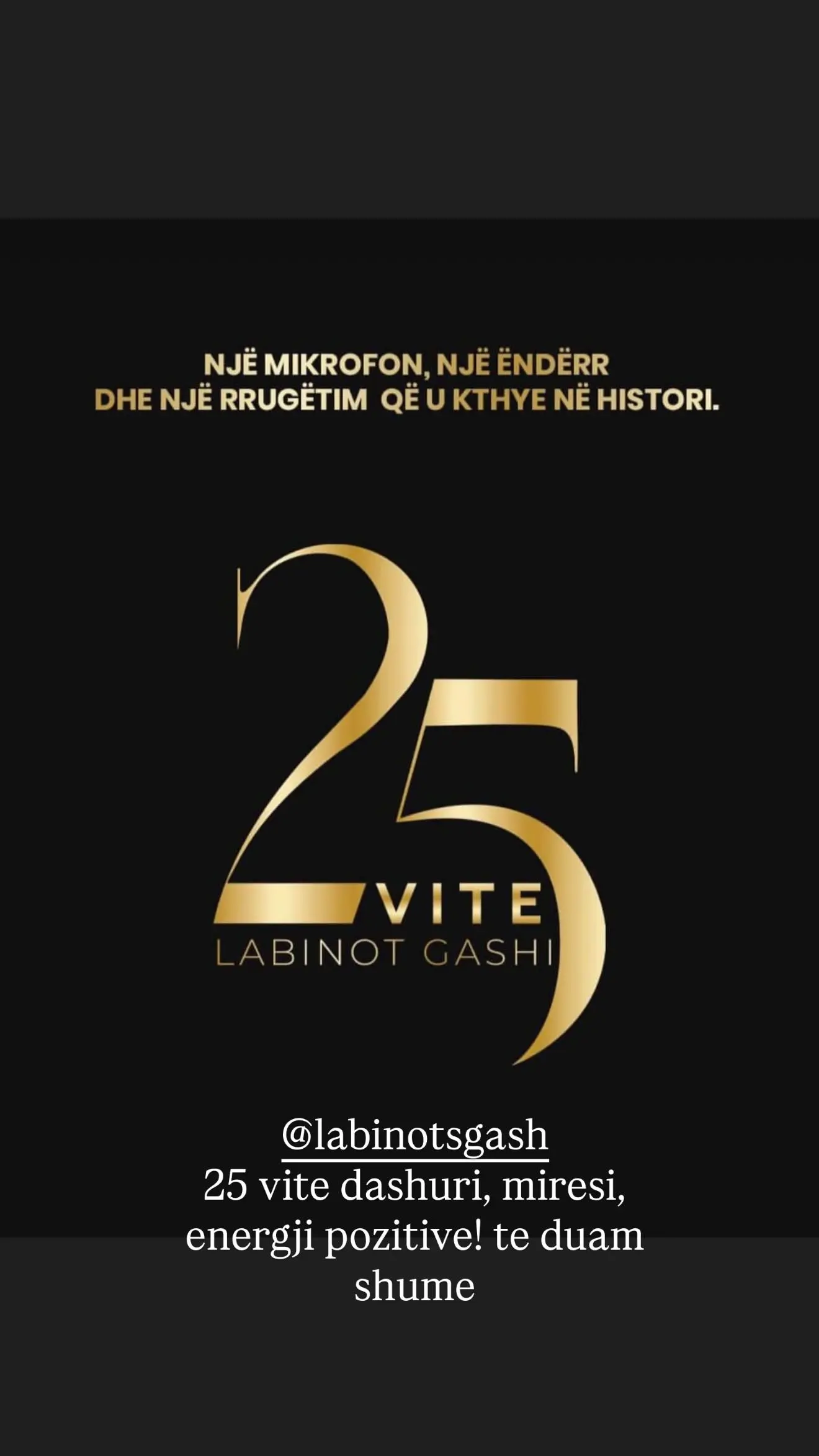 Gjithçka nisi pas një postimi të prezantuesit të njohur Labinot Gashi, i cili po feston 25-vjetorin e karrierës së tij.