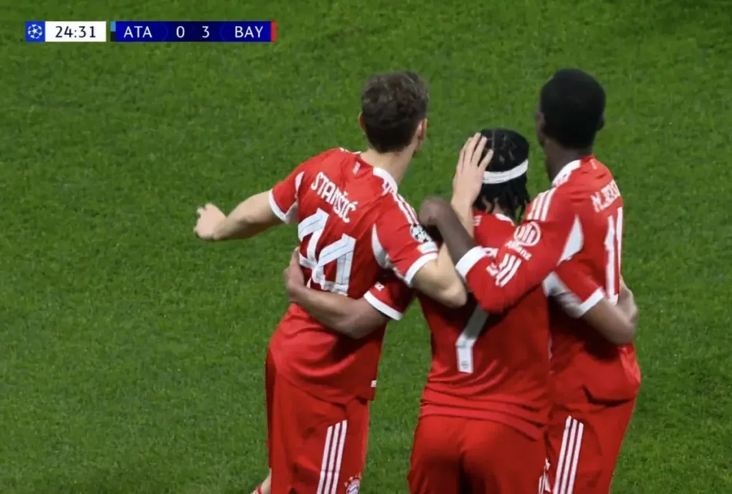 Në Bergamo, Bayern Munich ka shënuar një fillim të shkëlqyer ndaj Atalantës, duke kaluar në avantazh në minutën e 12-të. Pas një goditjeje të shpejtë këndi, Serge Gnabry ka dërguar një top të bukur brenda zonës, ku Josip Stanisic e ka dërguar atë në rrjetë, duke i dhënë bavarezëve një epërsi të hershme.