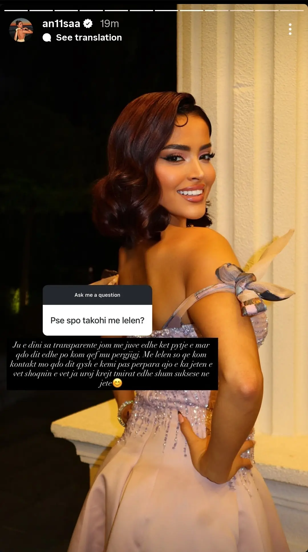 “Me Lelen s’qe kom kontakt mo çdo ditë qysh e kemi pas përpara, ajo e ka jetën e vet, shoqnin e vet, e unë ja uroj krejt të mirat edhe shumë suksese në jetë”, ka shkruar Anisa në Instagram. Kjo deklaratë duket se mbyll një kapitull të rëndësishëm në jetën e saj, duke lënë pas një miqësi që dikur ishte e fortë.