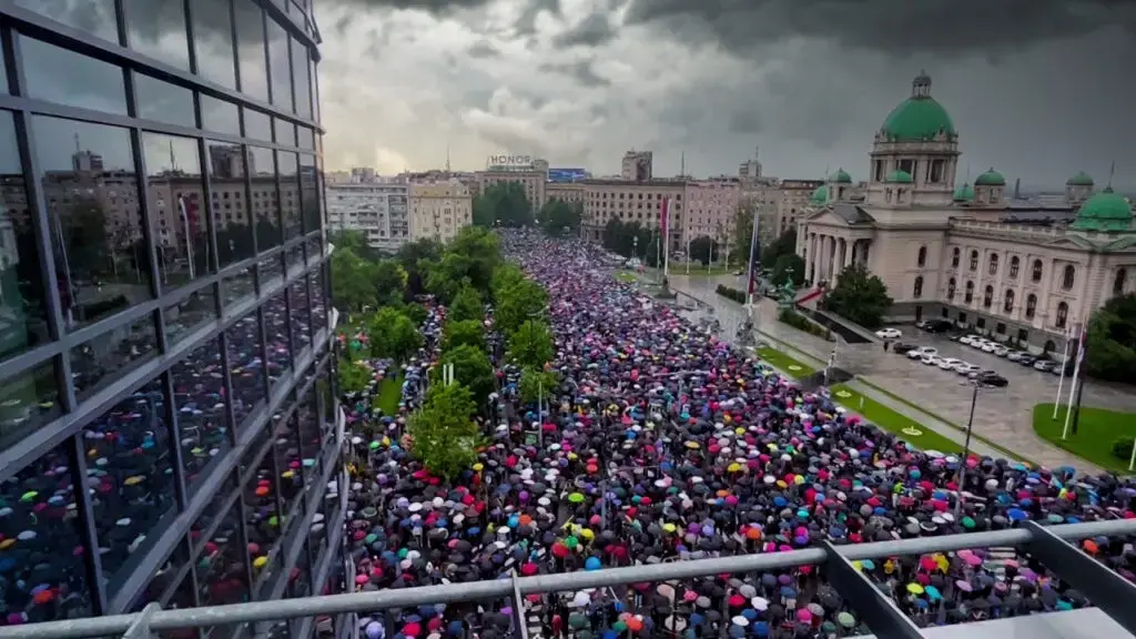 Kujtojmë se gjatë të shtunës së kaluar, në qendër të Beogradit, dhjetëra mijëra persona protestuan nën sloganin “Serbia kundër dhunës”.