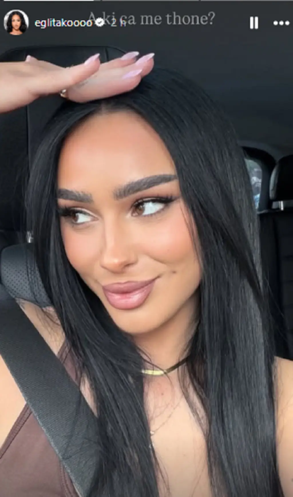 Së fundmi, në ditën kur Gjesti u arrestua dhe iu caktua masa e paraburgimit prej një muaji, Egli publikoi një Instastory ku shfaqet duke buzëqeshur.