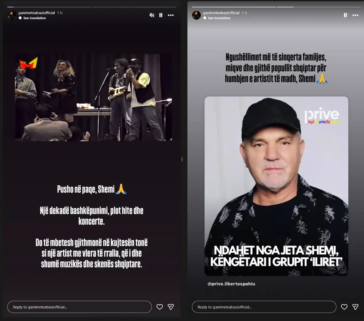 Pas momentit nostalgjik, Ganimete Abazi ka shprehur ngushëllimet e saj për humbjen e madhe, duke rishpërndarë njoftimin e dhënë nga “Prive by Liberta Spahiu”. Ajo ka theksuar rëndësinë e Shemit për muzikën dhe për publikun shqiptar.