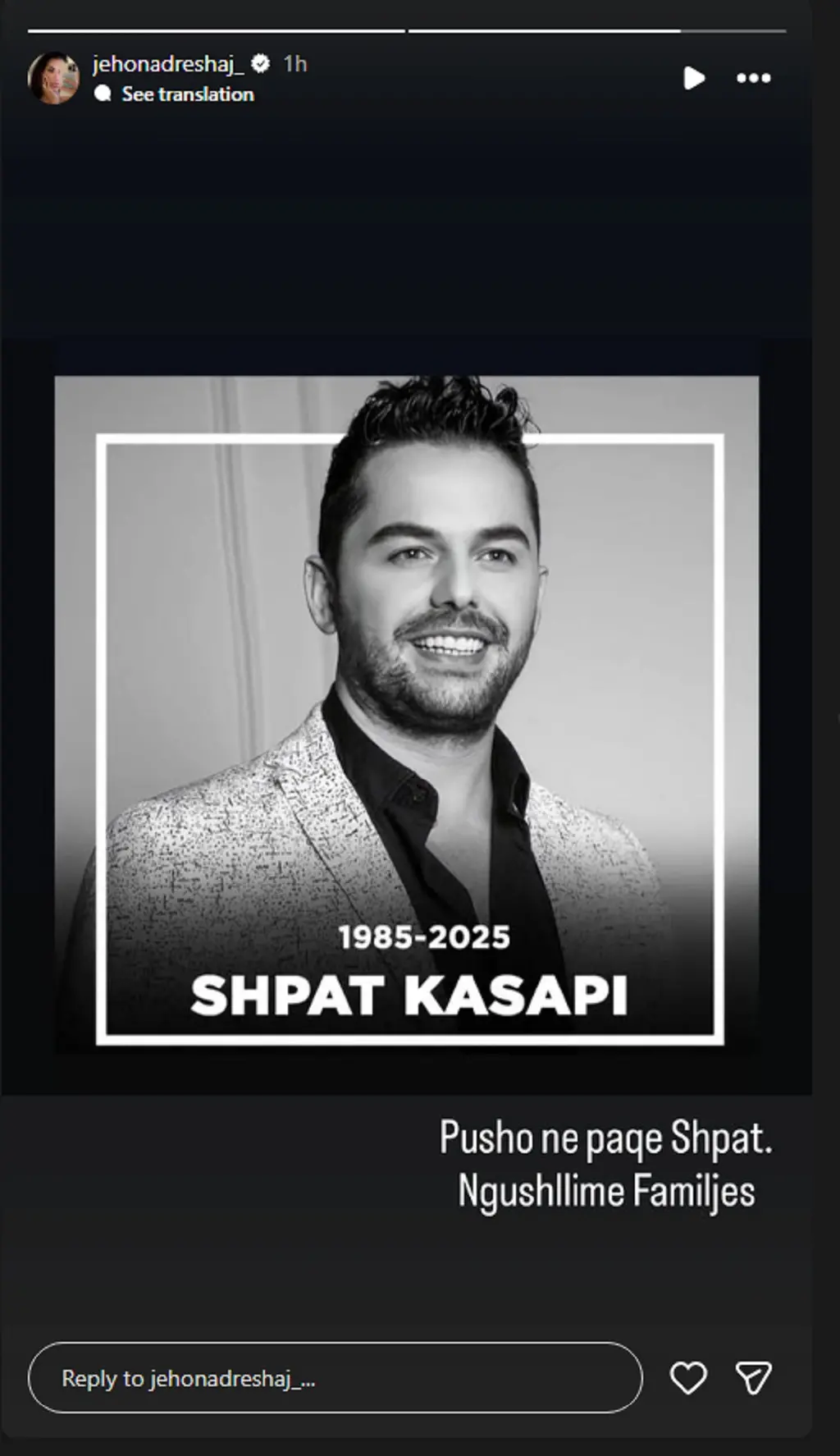 Ajo ka shkruar: “Pusho në paqe, Shpat. Ngushëllime familjes.”
