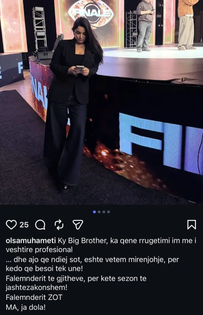 Menjëherë pas finales, producentja e formatit, Olsa Muhameti, ndau me ndjekësit një mesazh emocional në rrjetet sociale.