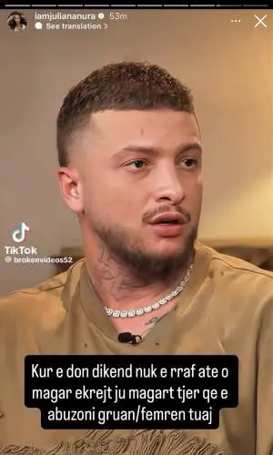 Juliana ka ndarë një video nga intervista e Feros, duke e shoqëruar atë me një mesazh të fortë: “Kur e don dikë nuk e rraf atë o magar, e krejt ju magarë tjerë që e abuzoni gruan/femrën tuaj.