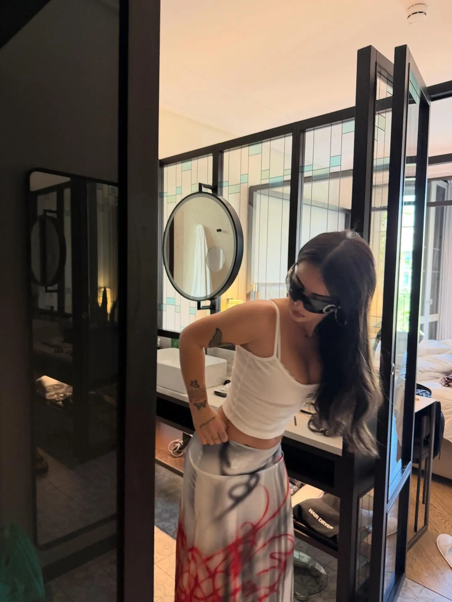 Ajo ka postuar fotografi nme rroba banjoje, nga udhëtimi dhe nga përgatitjet për të dalur.