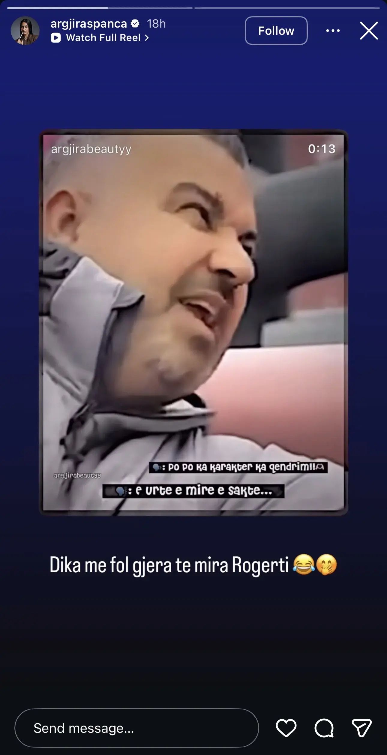 “Dika me fol gjera te mira Rogerti 😂🤭”, – ka shkruar ajo, duke lënë të kuptohet se i ka ardhur mirë për fjalët e thëna.
