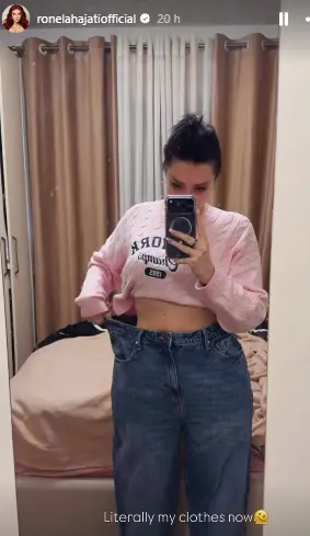 Me mbishkrimin “Literally my clothes now”, Ronela ka lënë të kuptohet se ka humbur një sasi të konsiderueshme peshe.