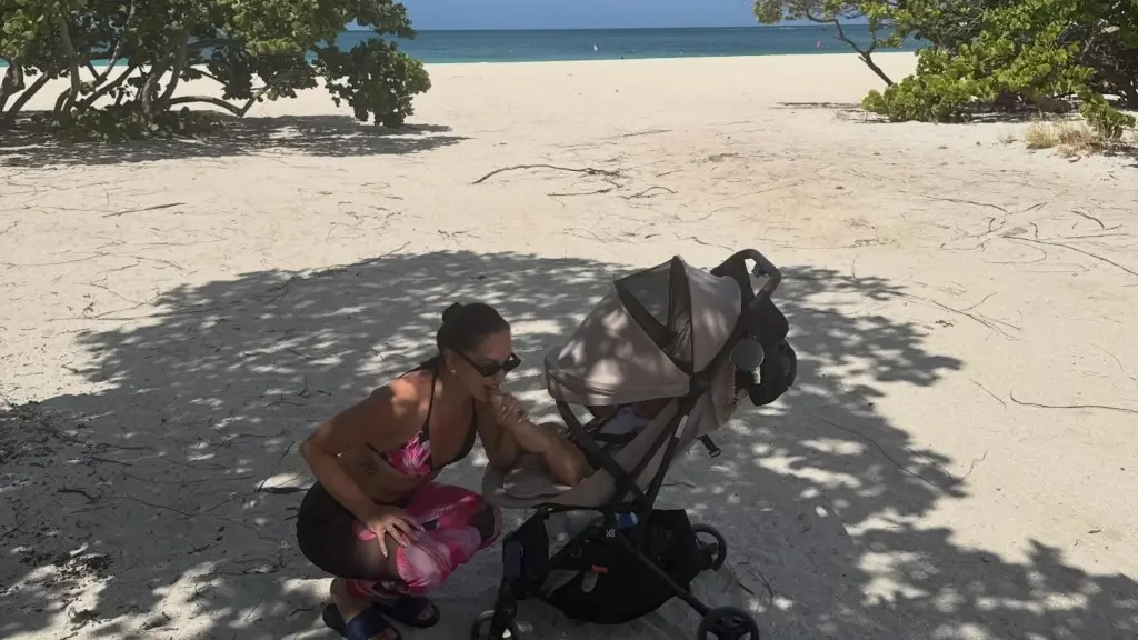 Samanta për herë të parë në pushime me vajzën, mahnit me linjat pas lindjes