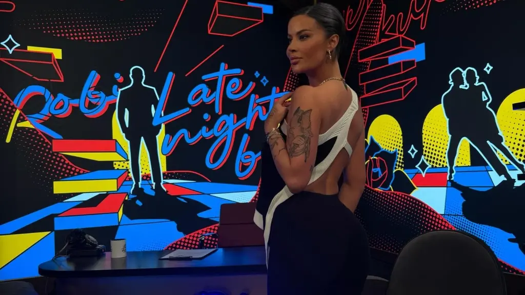 Fotografia e publikuar së fundmi e tregon atë në mjedisin e emisionit ‘Robi Late Night’. Me këtë paraqitje, Santiana demonstron stilin dhe sharmin e saj unik që ka fituar zemrat e shumë fansave shqiptarë.