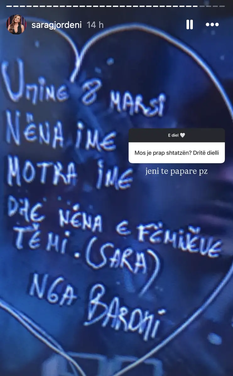Reagimi i Sarës ndaj kësaj pyetje ka qenë i veçantë. Ajo ka zgjedhur ta marrë me qeshje, duke e shoqëruar përgjigjen e saj me një mbishkrim epik: “Jeni të paparë, pz”. Kjo tregon se ajo e sheh situatën me humor dhe nuk e merr shumë seriozisht, duke e kthyer gjithçka në një moment të këndshëm për ndjekësit e saj.