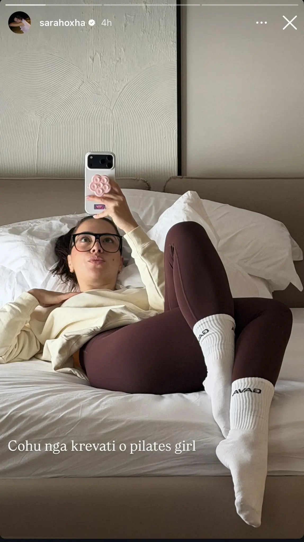 Një nga postimet e saj më të fundit ka tërhequr vëmendjen e ndjekësve, ku ajo shfaqet në një moment të zakonshëm të mëngjesit, duke i drejtuar vetes një thirrje të veçantë: “Çohu nga krevati o pilates girl”.