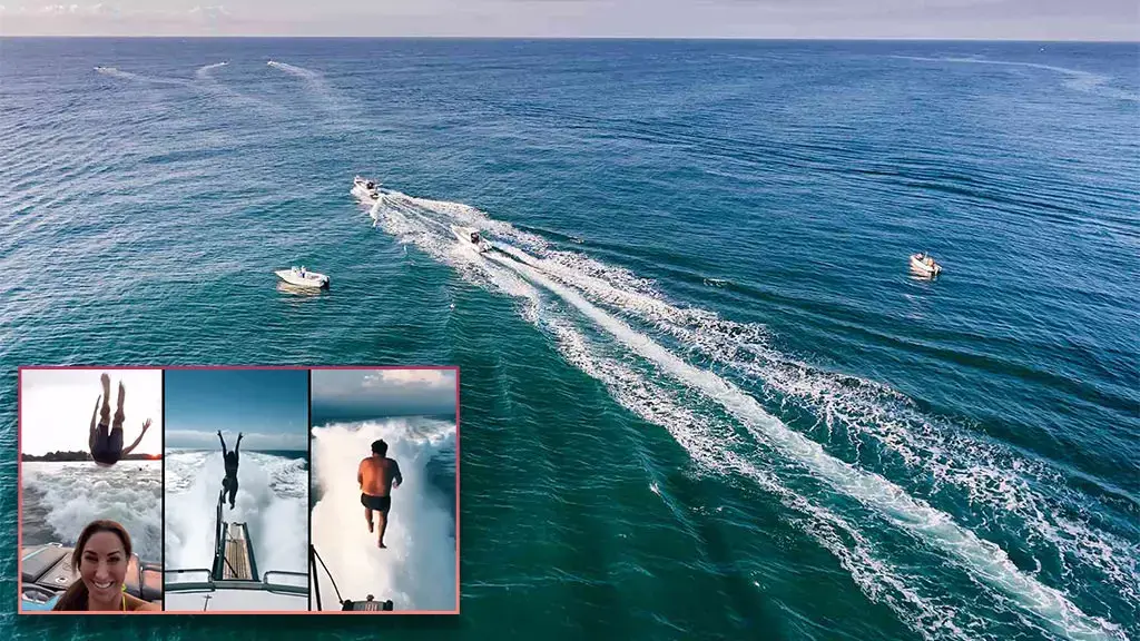 Në trendin online, njerëzit filmojnë veten duke kërcyer nga varkat me shpejtësi drejt ujit.