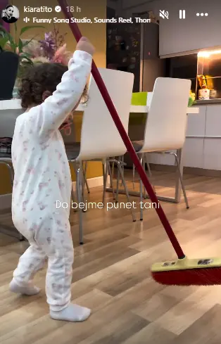 Një video e publikuar nga Kiara tregon Lunën duke fshirë dyshemenë me një përkushtim të jashtëzakonshëm, një moment që ka kapur vëmendjen e të gjithëve. Ky veprim i vogël ka shkaktuar një valë reagimesh pozitive nga ndjekësit e saj.