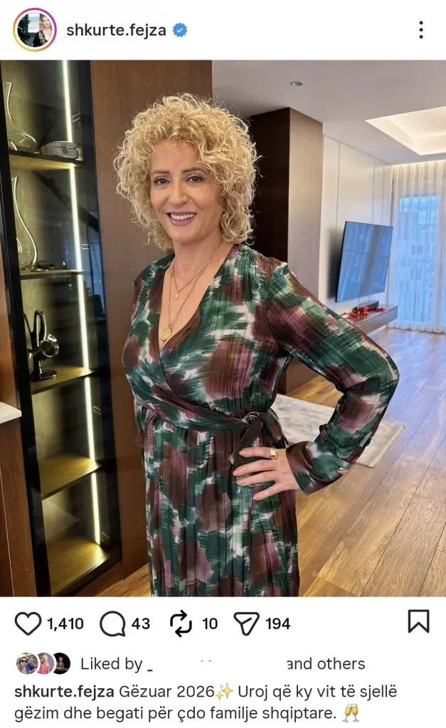 Ajo ka shkruar: “Gëzuar 2026✨ Uroj që ky vit të sjellë gëzim dhe begati për çdo familje shqiptare.”