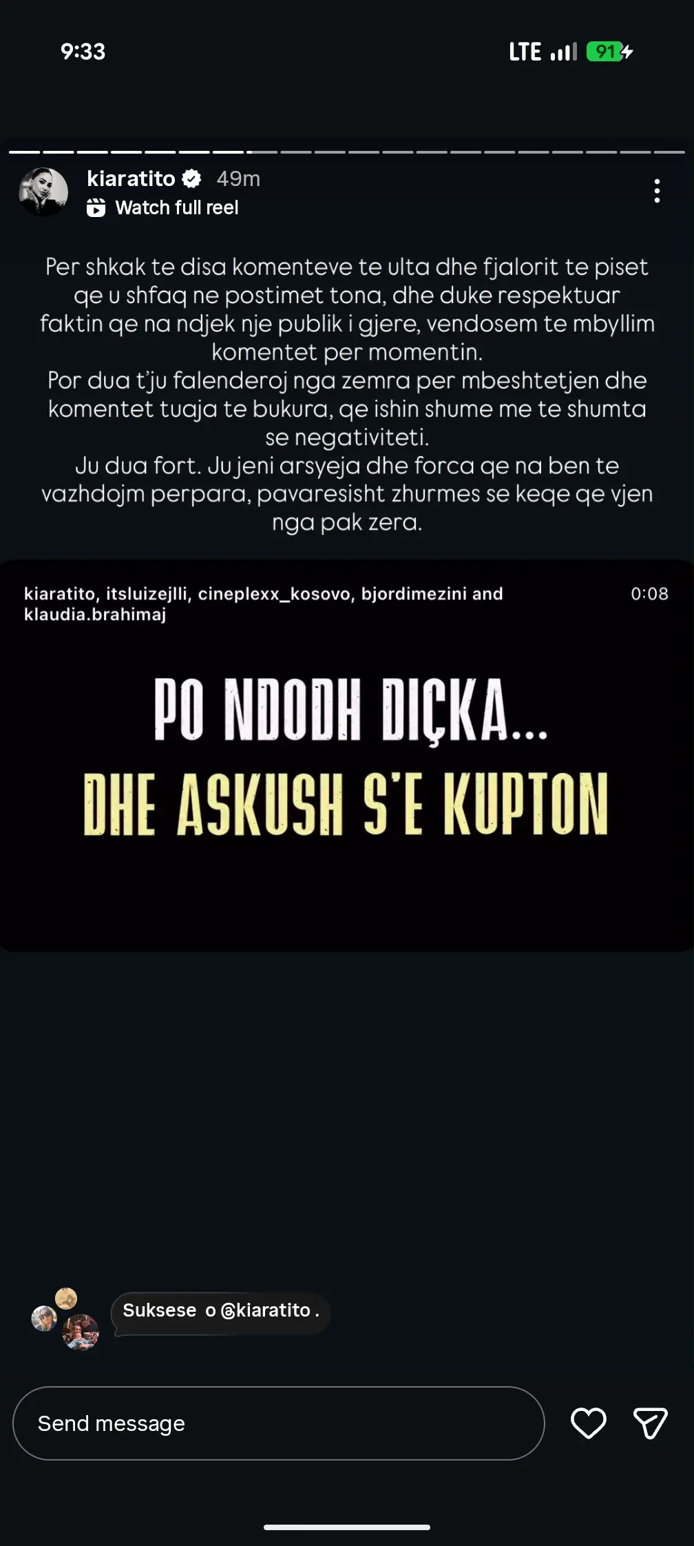 Kiara ka shpjeguar se komentet e ulëta dhe fjalori i pisët që e kanë shoqëruar këtë periudhë, e kanë bërë të pamundur për të vazhduar normalisht. Ajo ka ndarë me ndjekësit e saj arsyet pse ka vendosur të mbyllë mundësinë e komentimit, duke theksuar se është e nevojshme të mbrohet nga sulmet e papranueshme.