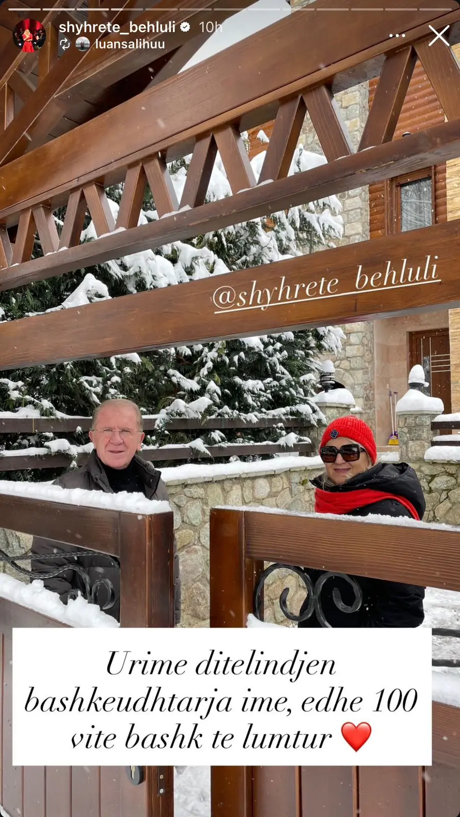 Ai ka zgjedhur një moment të veçantë për të shprehur dashurinë e tij për Shyhreten, duke postuar një fotografi të ëmbël në rrjetet sociale, ku çifti shfaqet në një ambient dimëror të mbuluar nga dëbora.
