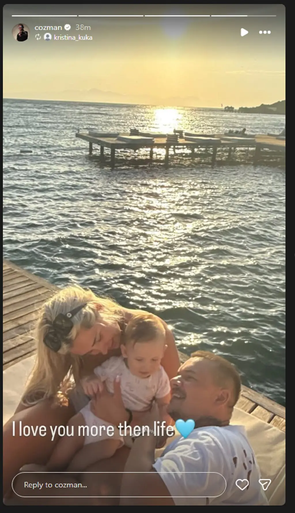 Në foton e publikuar, ai shfaqet së bashku me gruan dhe djalin e tyre, duke shijuar motin me diell.