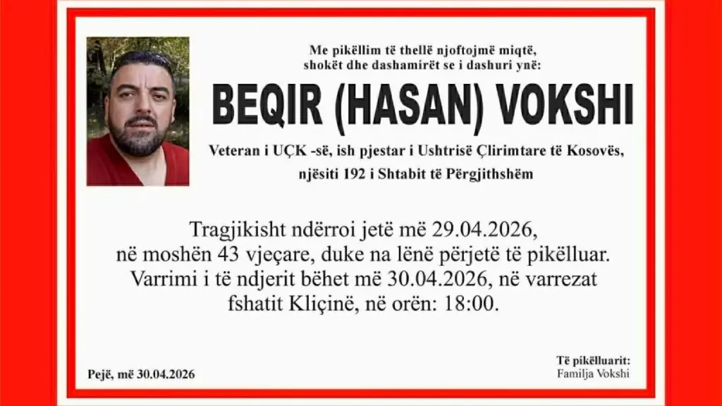 Sot varroset Beqir Vokshi 43-vjeçar, që vdiq duke punuar gjatë ditës së djeshme në një punishte në Gllaviqicë të Pejës.