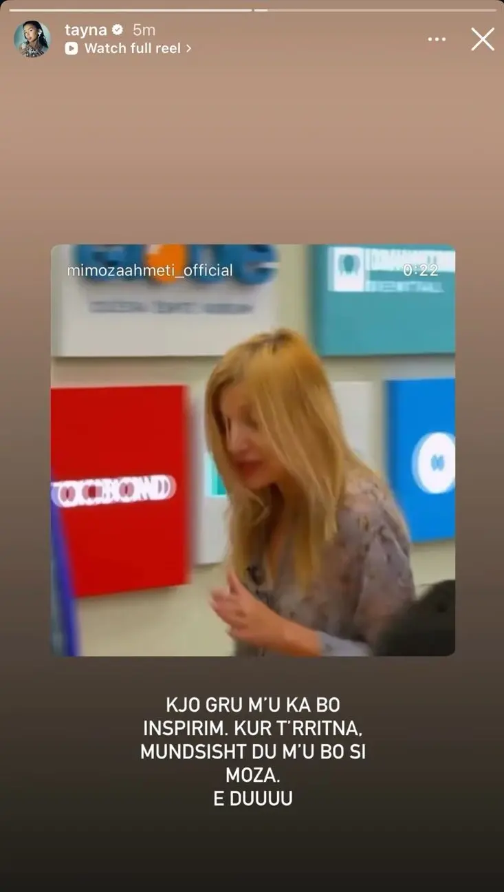 Përmes një postimi në llogarinë e saj në Instagram, Tayna ka shpërndarë një video të Mimozës, duke i bashkangjitur disa fjalë me plot admirim.