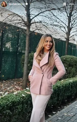 Me një pamje të freskët, ajo ka ndarë një fotografi të re ku shfaqet e veshur me një pallto rozë të çelët dhe pantallona të bardha, duke e bërë këtë kombinim të duket tërheqës dhe modern.