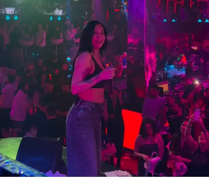 Me një palë xhinse të thjeshta dhe një crop-top të zi, ajo u shfaq sikur sapo kishte dalë për një kafe të lirshme, duke e trajtuar skenën e madhe me një thjeshtësi që ishte ndoshta pak më e tepruar se zakonisht.