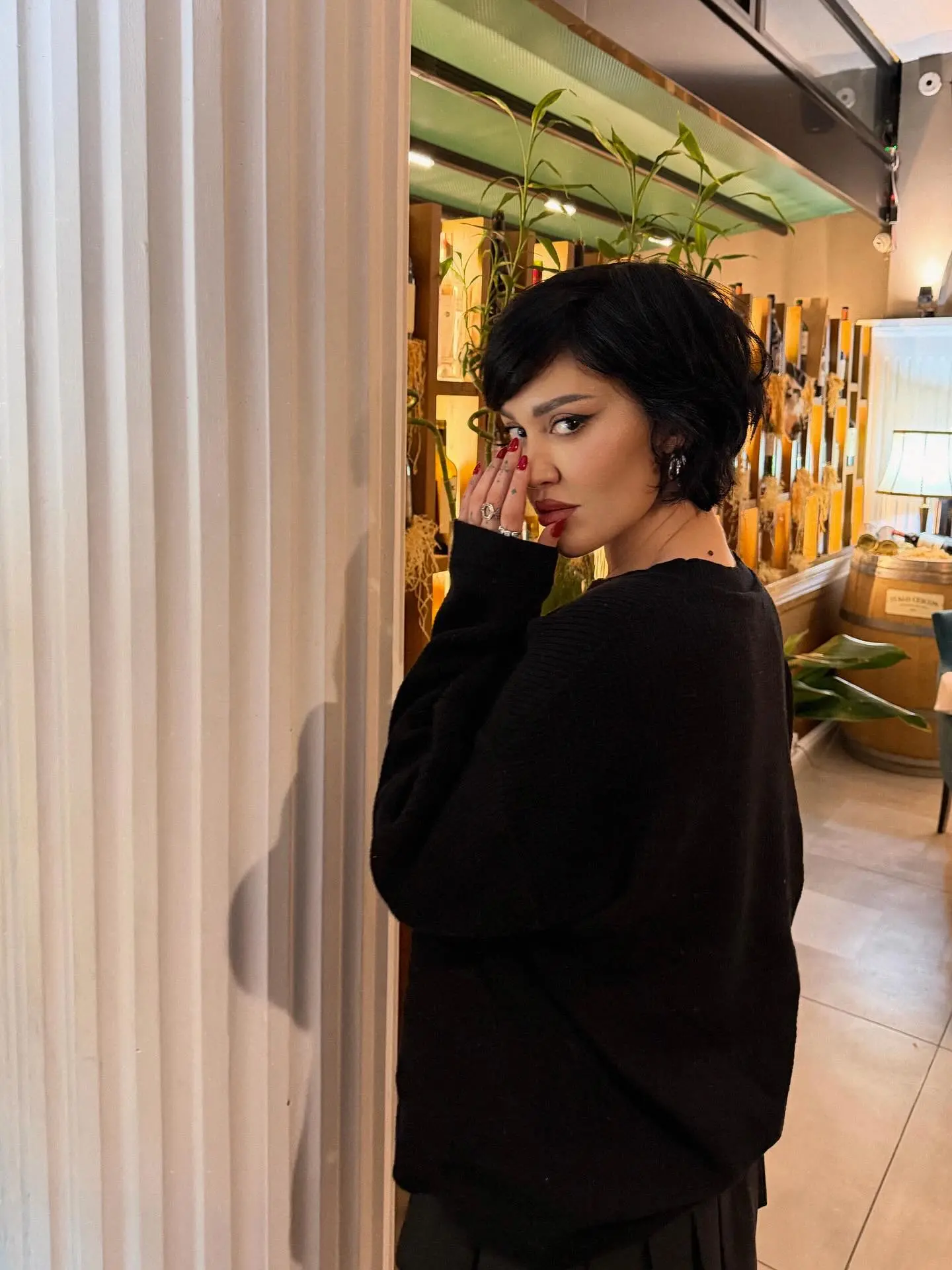 Flokët e saj të shkurtër dhe ngjyra e zezë i japin asaj një pamje më moderne dhe të guximshme, që duket se i përshtatet më së miri stilit të saj të jetesës.