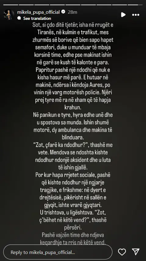 Mikela Pupa, ish-banorja e BBVA, ka reaguar me shqetësim pas këtij incidenti. Ajo ndodhej në makinë me vajzën e saj kur policia i kërkoi të hapte krahun për të lejuar kalimin e forcave të rendit drejt vendngjarjes. Kjo situatë e ka lënë atë të mendonte për pasojat e këtij akti të dhunshëm.