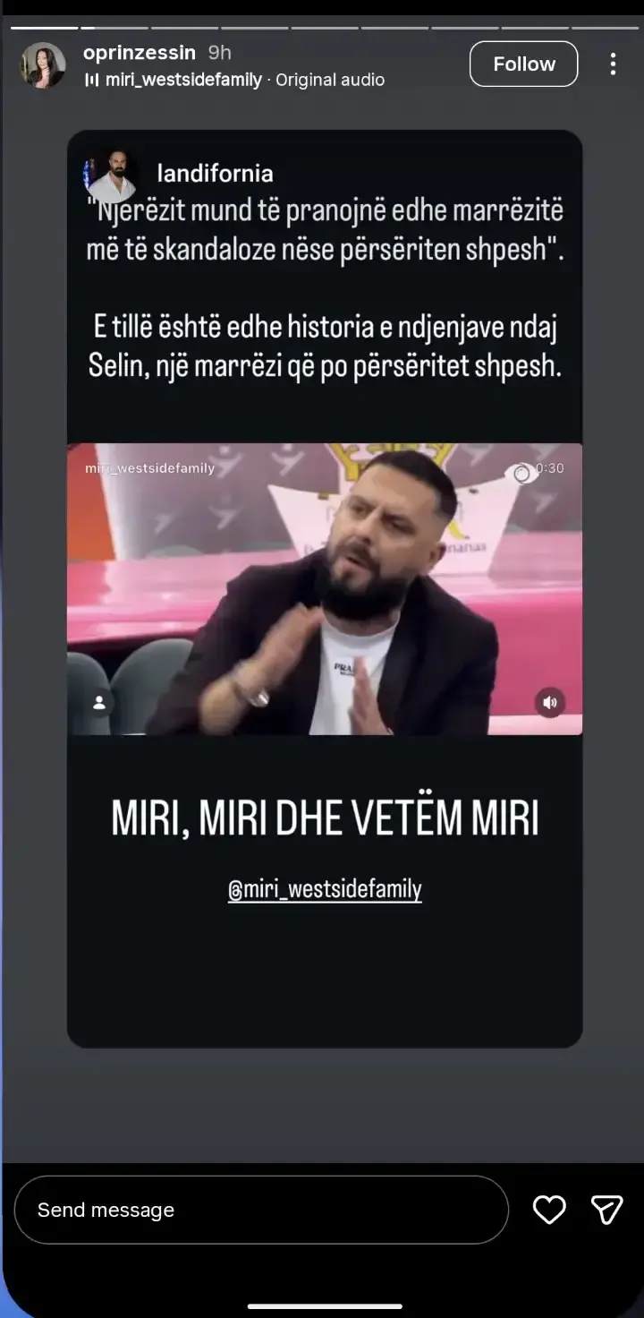Postimi i saj hodhi poshtë të gjitha aludimet për një romancë mes Mirit dhe Selinës, duke e cilësuar situatën si një histori të ekzagjeruar.