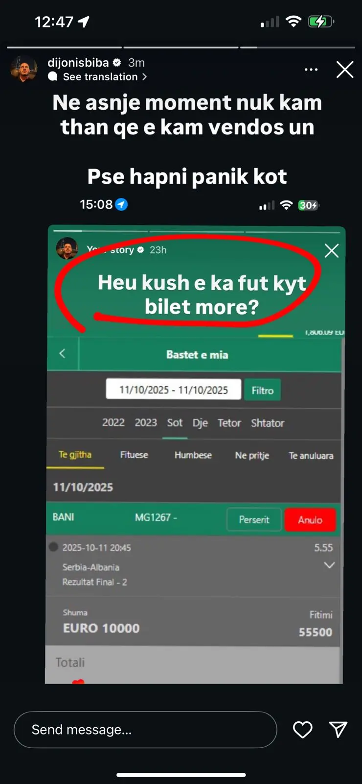 Pas një bilete basti prej 10 mijë eurosh për ndeshjen Serbi–Shqipëri, lajmet për arrestimin e Dionis Bibës kanë shkaktuar një valë reagimesh në rrjetet sociale.