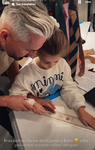 Me këtë imazh, shihet qartë se vajza e tij po e ndjek me besnikëri rrugën e babait, duke u bërë një pasardhëse e denjë në profesionin e dizajnit. Kjo është një frymëzim për shumë të rinj që dëshirojnë të ndjekin ëndrrat e tyre artistike.