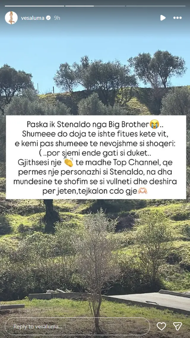 Në një postim të saj në rrjetet sociale, Vesa shprehu dëshpërimin e saj për largimin e Stenaldos, duke thënë: “Paska ik Stenaldo nga Big Brother. Shumë do doja të ishte fitues këtë vit. E kemi pasur shumë të nevojshme si shoqëri, por s’jemi ende gati si duket”.
