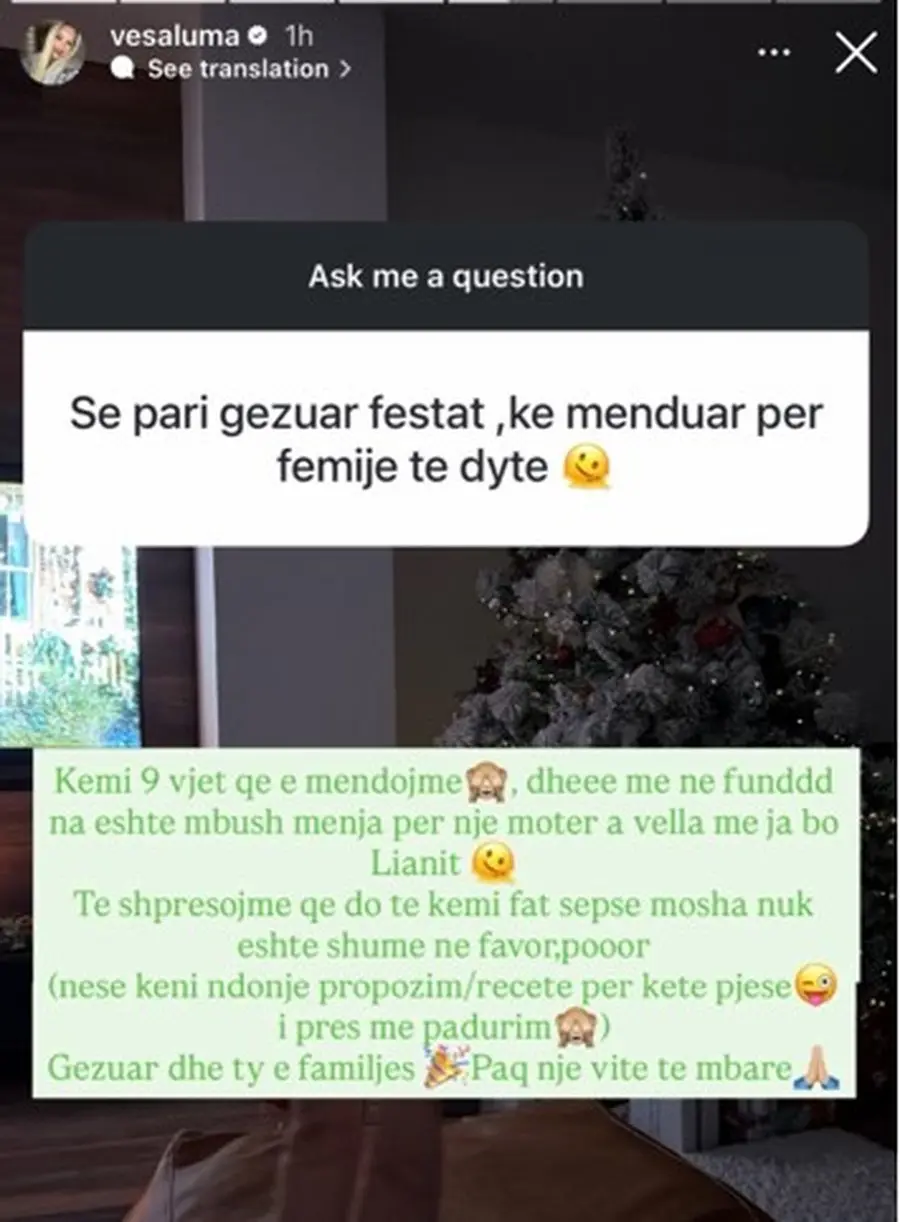 Gjatë një sesioni interaktiv në Instagram, Vesa u përball me një pyetje intriguese nga një ndjekës, e cila e bëri atë të reflektojë mbi të ardhmen e saj familjare.