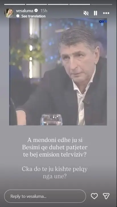 Duke ripostuar këtë fragment, Vesa i ka drejtuar fansave një pyetje që ka ngritur dyshime për planet e saj të ardhshme: “A mendoni edhe ju si Besimi që duhet patjetër të bëj emision televiziv? Çka do të ju kishte pëlqyer nga unë?”.