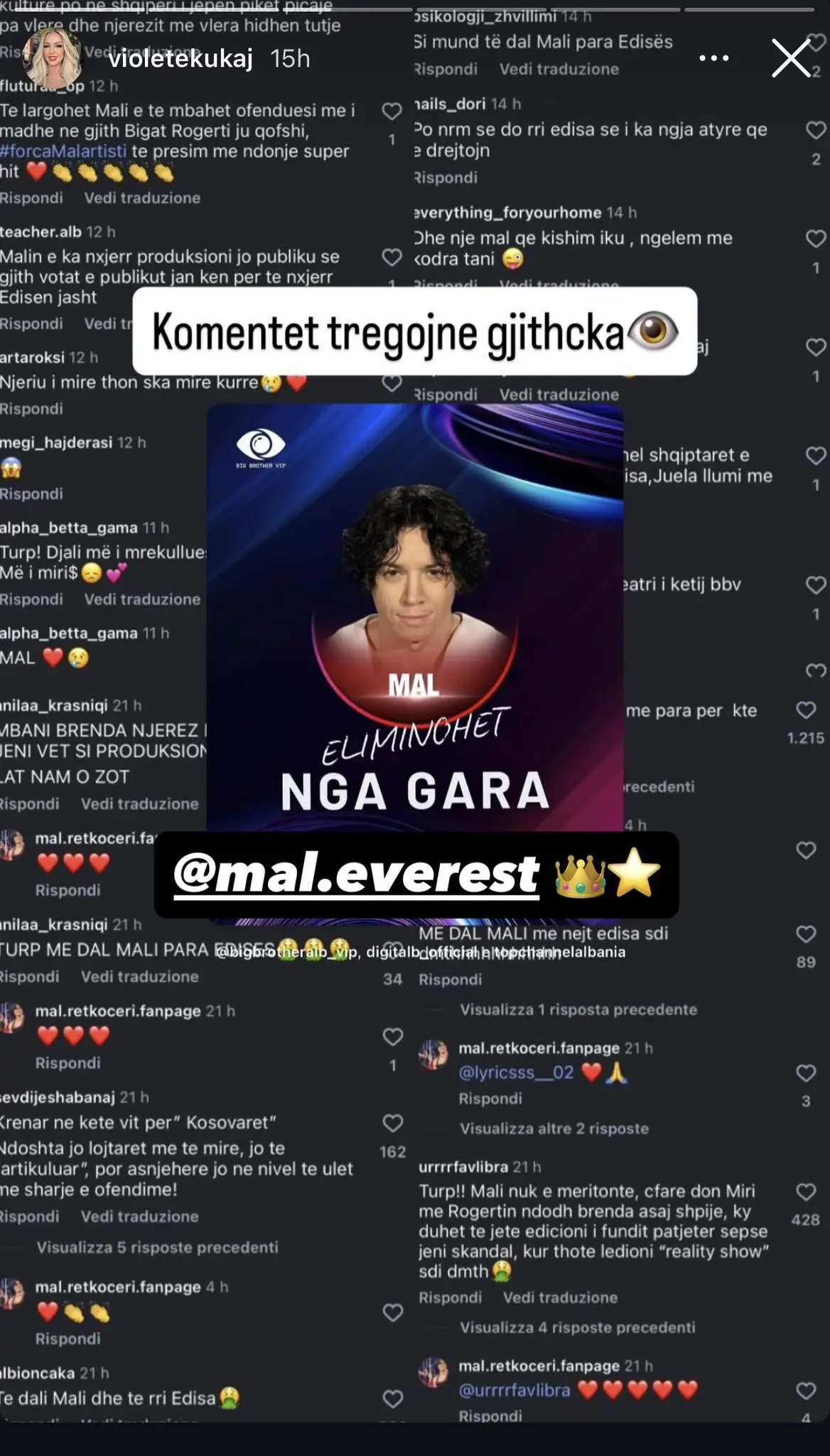 Pas eliminimit të Malit nga “Big Brother VIP Albania”, nëna e tij, këngëtarja Violete Kukaj, ka reaguar në rrjetet sociale.