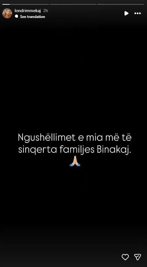 “Ngushëllime e mia më të sinqerta familjes Binakaj”, ka shkruar Londrimi, duke theksuar rëndësinë e solidaritetit në kohë të vështira.
