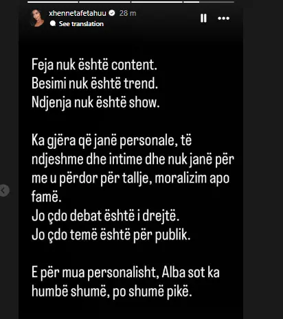 “Feja nuk është një produkt për konsum. Besimi nuk është një trend që mund të shitet. Ndjenjat janë intime dhe nuk duhet të përdoren për tallje apo për të fituar famë”, ka shkruar ajo në rrjetet sociale.