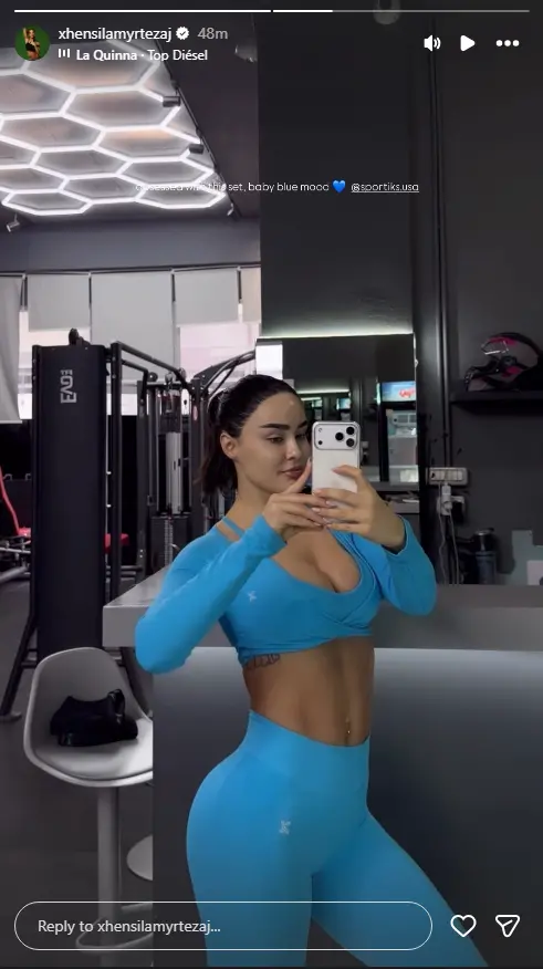 Minuta më parë ndau një video ku shihet e veshur me tuta sportive ngjyrë të kaltër.