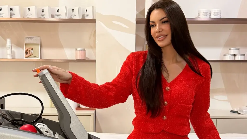 Veshur në një kostum të kuq që përshtatet në mënyrë perfekte me sfondin, Zaimina transmeton një mesazh të dashurisë dhe pasionit. Duke qëndruar pranë një dekori elegant, aura e saj është mbushur me ngrohtësi dhe hijeshi.