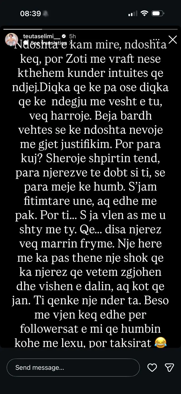 Teuta Selimi, me këtë mesazh të fortë, tregon se është e gatshme të mbrojë veten dhe të vendosë kufij të qartë.